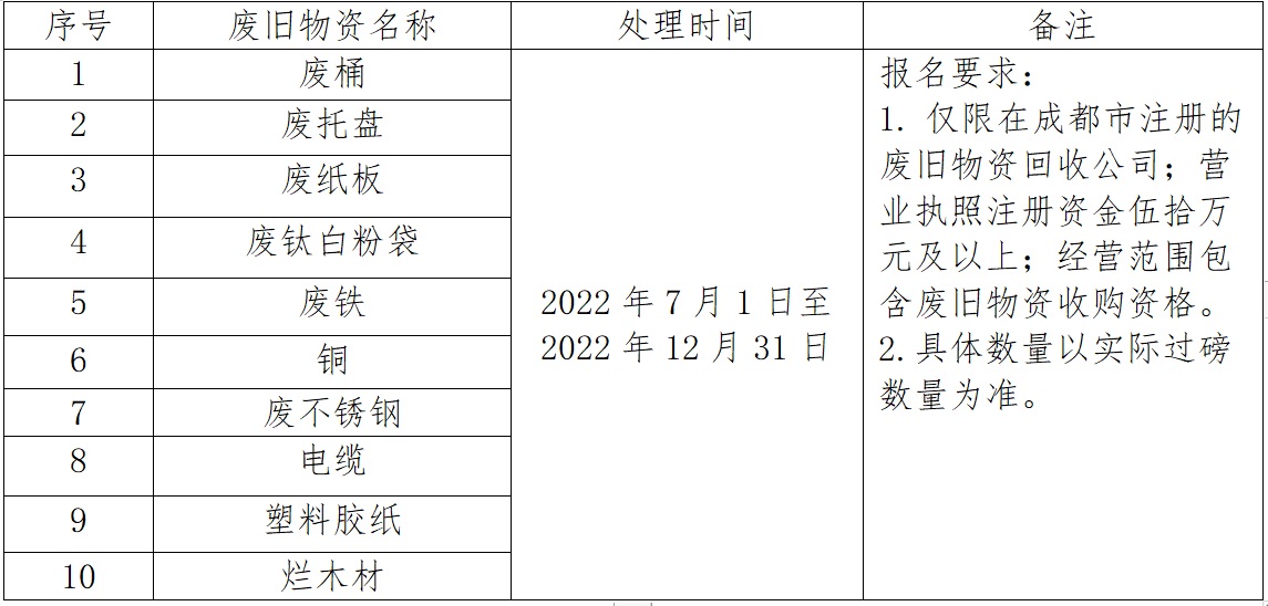 廢舊物資處理招標公告2022下半年