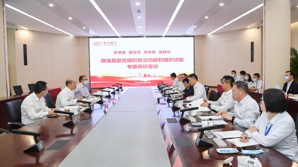 本網訊 在深入開展學習貫徹習近平新時代中國特色社會主義思想主題教育之際,5月24日至25日,國務院國資委黨委委員、副主任譚作鈞就增強基層黨組織政治功能和組織功能到東方電氣集團調研指導工作。國資委黨建工作局負責同志陪同調研。東方電氣集團黨組書記、董事長俞培根,黨組成員、副總經理張繼烈、孫國君參加相關調研。