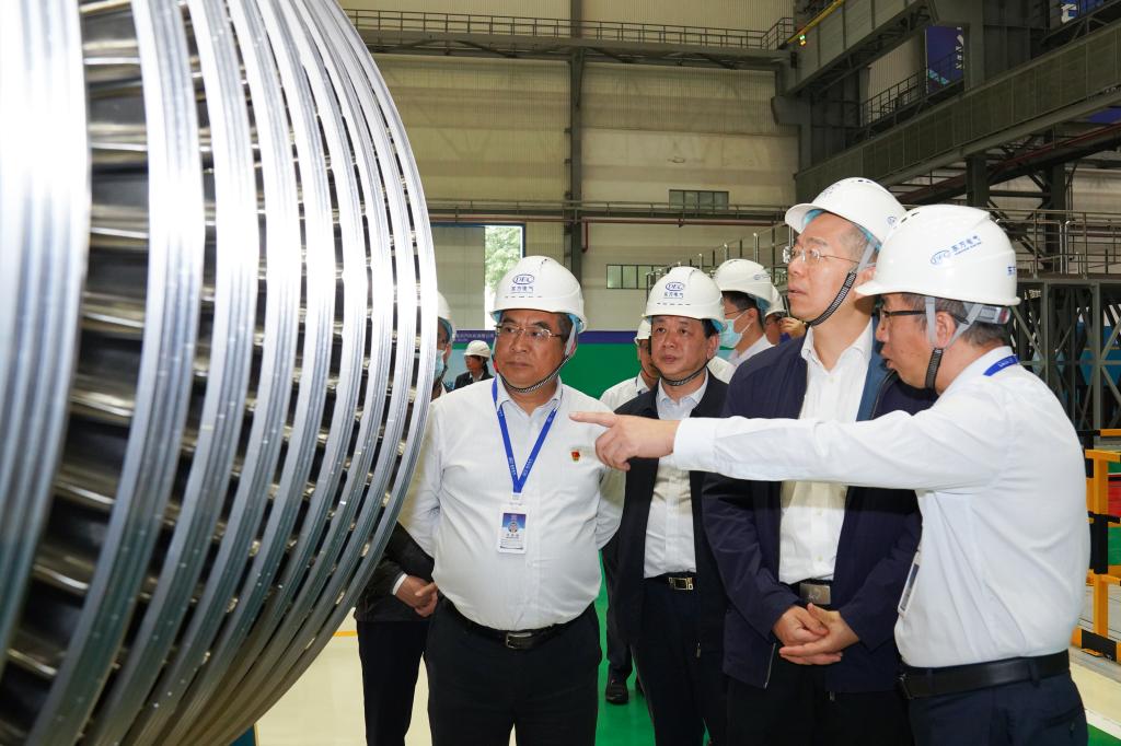 譚作鈞一行深入東方電氣集團德陽生產制造基地,到所屬東方汽輪機、東方電機的全國重點實驗室、葉片加工黑燈產線、汽輪機數字化總裝車間、大型清潔能源裝備重型制造數字化車間、東電印跡、勞模大師創新工作室、黨員活動室等基層一線調研。在中國“爭氣機”整機試驗臺前,譚作鈞高度肯定14年來F級50兆瓦重型燃機的自主創新成果,勉勵青年科研工作者傳承好“東汽精神”,在勇攀科技的高峰插上東方電氣的旗幟。