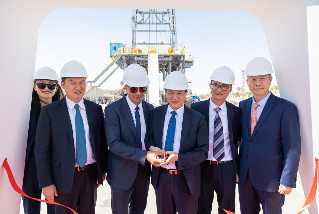 儀式上,參會領(lǐng)導(dǎo)共同為第一套總裝下線的鉆機(jī)剪彩,參觀了宏華埃及生產(chǎn)工廠和制造中的鉆機(jī),并慰問了在埃中方員工。