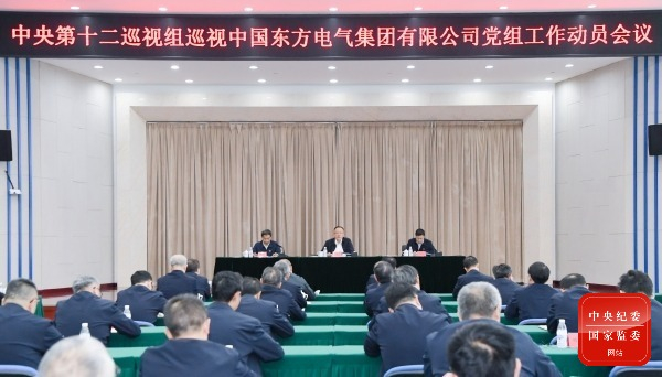 根據黨中央關于巡視工作統一部署,近日,中央第十二巡視組巡視中國東方電氣集團有限公司黨組工作動員會召開。中央第十二巡視組組長祝樹民作了動員講話,對深入學習貫徹習近平總書記關于巡視工作重要講話精神,扎實開展巡視工作提出要求。東方電氣集團黨組書記、董事長俞培根主持會議并講話。