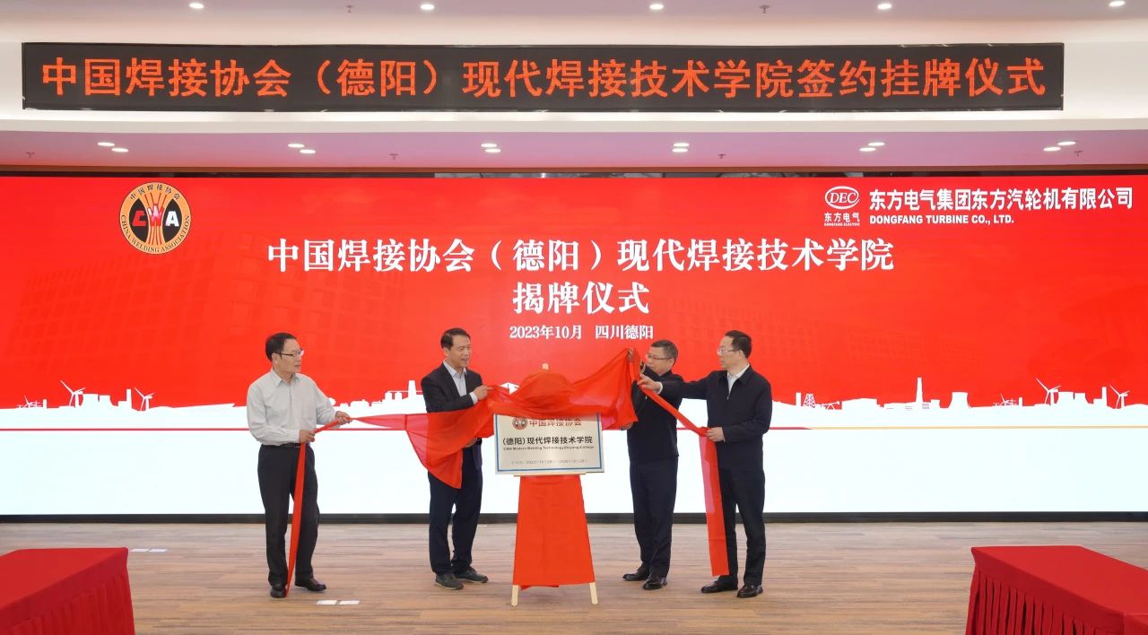 31日,與會嘉賓代表還到東方電氣集團位于德陽的東方電機、東方汽輪機、東方鍋爐德陽制造基地參觀,深入行業首個5G全連接數字化工廠、氫能全產業鏈應用技術示范園、大型清潔能源裝備重型制造數字化車間等地,詳細了解東方電氣集團推動裝備制造業高端化、智能化、綠色化發展的最新成果。 31日,中國焊接協會(德陽)現代焊接技術學院簽約及掛牌儀式在東方電氣集團東方汽輪機有限公司舉行,中國焊接協會副會長兼秘書長李連勝、副秘書長吳九澎,東方電氣集團總經理助理、組織人事部部長、黨校校長曾小平,東方汽輪機黨委書記、董事長劉輝共同為“中國焊接協會(德陽)現代焊接技術學院”揭牌。中國焊接協會與東方汽輪機簽署了合作協議。