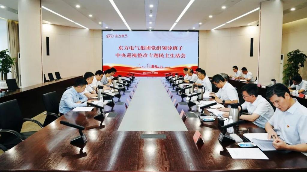本網訊 7月29日,東方電氣集團黨組召開中央巡視整改專題民主生活會。中央紀委國家監委第四監督檢查室,中央組織部干部五局、組織一局,四川省委組織部有關同志到會指導。集團公司黨組書記、董事長俞培根主持會議。集團公司黨組領導班子成員參加會議。