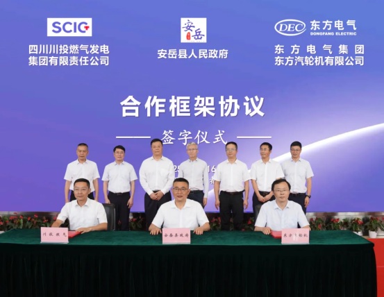 6月16日,東方電氣集團(tuán)所屬東方汽輪機(jī)、安岳縣人民政府、四川川投燃?xì)獍l(fā)電集團(tuán)有限責(zé)任公司簽署三方合作框架協(xié)議。東方電氣集團(tuán)總經(jīng)理、黨組副書(shū)記張彥軍,資陽(yáng)市人民政府副市長(zhǎng)李發(fā)剛,四川能源發(fā)展集團(tuán)黨委委員、副董事長(zhǎng)李文志出席簽字儀式,集團(tuán)公司黨組成員、副總經(jīng)理李建華參加活動(dòng)。