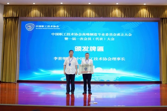 會上,李世明宣布中國職工技術協會高端制造專業委員會(以下簡稱“高端制造專委會”)正式成立,并向高端制造專委會頒發匾牌,向高端制造專委會會長、集團公司總經理助理曾小平頒發銘牌和證書。劉偉宣讀關于高端制造專委會成立的批復。