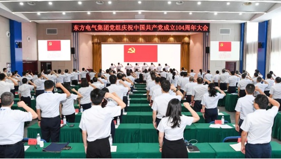 6月30日,在全黨開展深入貫徹中央八項規定精神學習教育之際,東方電氣集團黨組召開慶祝中國共產黨成立104周年大會,回顧黨的作風建設歷程,以作風建設為抓手推動全面從嚴治黨向縱深發展,引領廣大黨員干部職工弘揚優良作風,以更加飽滿的精神狀態助推“十四五”規劃圓滿收官。集團公司領導羅乾宜、張彥軍、張少峰、孫國君、袁明剛、王軍、李建華、呂雙出席會議。