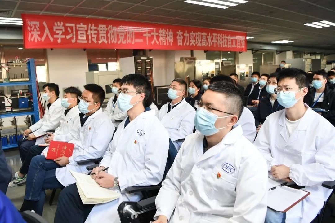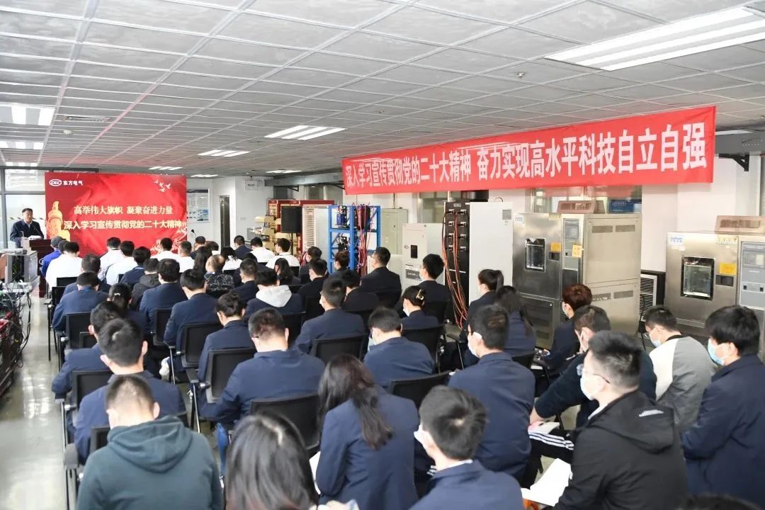 本網訊 為引導全集團廣大干部職工切實把思想和行動統一到黨的二十大精神上來,根據東方電氣集團黨組統一部署,11月22日,集團公司“高舉偉大旗幟 凝聚奮進力量”黨的二十大精神宣講隊首場宣講報告會在東方研究院新能源電池測試實驗室舉行,用“行走的課堂”講述“我們身邊”拼搏奮進爭先的鮮活故事,激勵科研工作者以實干搶抓創新先機,為加快實現高水平科技自立自強貢獻“東方”力量。