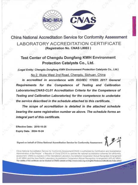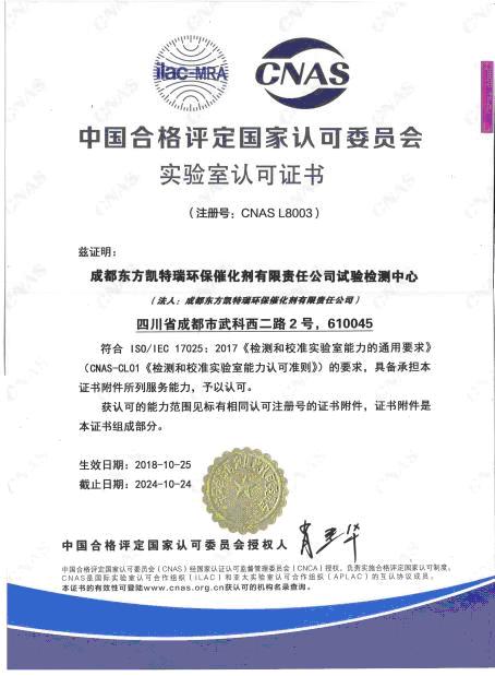 東方凱特瑞試驗(yàn)檢測中心(以下簡稱中心)成立于2006年,占地面積1500m2,擁有先進(jìn)的檢測設(shè)備和專業(yè)的人才隊(duì)伍,并于2015年10月首次通過中國合格評定國家認(rèn)可委員會認(rèn)可,獲得CNAS證書(證書注冊號:CNAS L8003),認(rèn)可范圍全面覆蓋了催化劑產(chǎn)品全尺寸檢測的所有關(guān)鍵指標(biāo),可為客戶提供高效和專業(yè)的技術(shù)檢測服務(wù)。